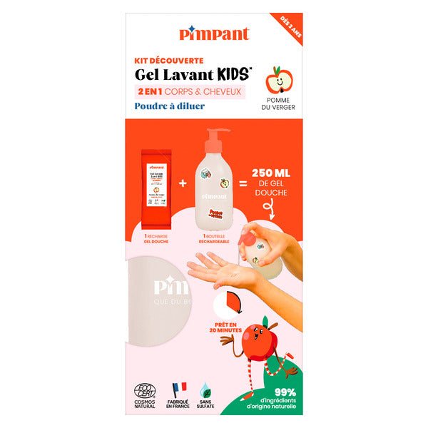 Ce kit contient 1 bouteille 300ml + 1 recharge de gel douche en poudre à diluer. Pas de quartier pour le plastique avec le Gel Lavant 2-en-1 Kids !